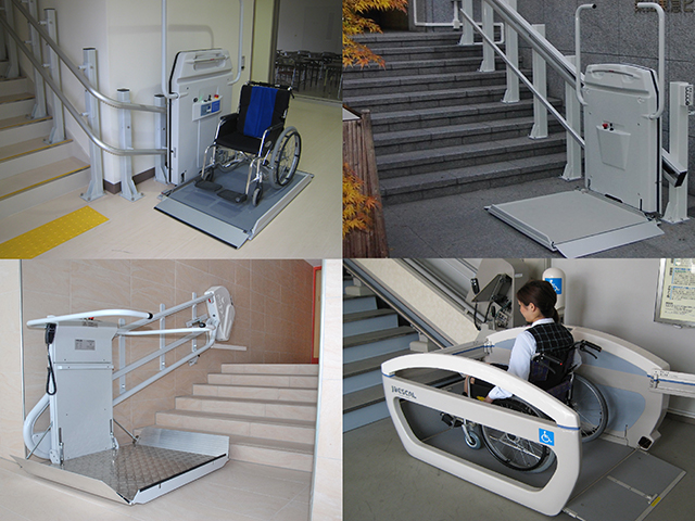 学校、病院、ホテル、デパート、寺社仏閣、集合住宅、工場・商業ビル、福祉施設など、様々な公共・商業施設において車いすのバリアフリー化に豊富な実績と経験があります。現地調査から計画、機種選定、施工からアフターサービスまで、多くの施設担当者様から支持を頂いております。